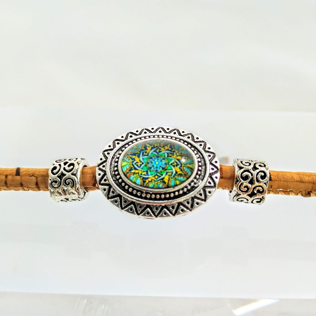 - wunderschönes Mittelstück, innen mit türkis-goldener Blume, eingerahmt von 2 feinen Beads
