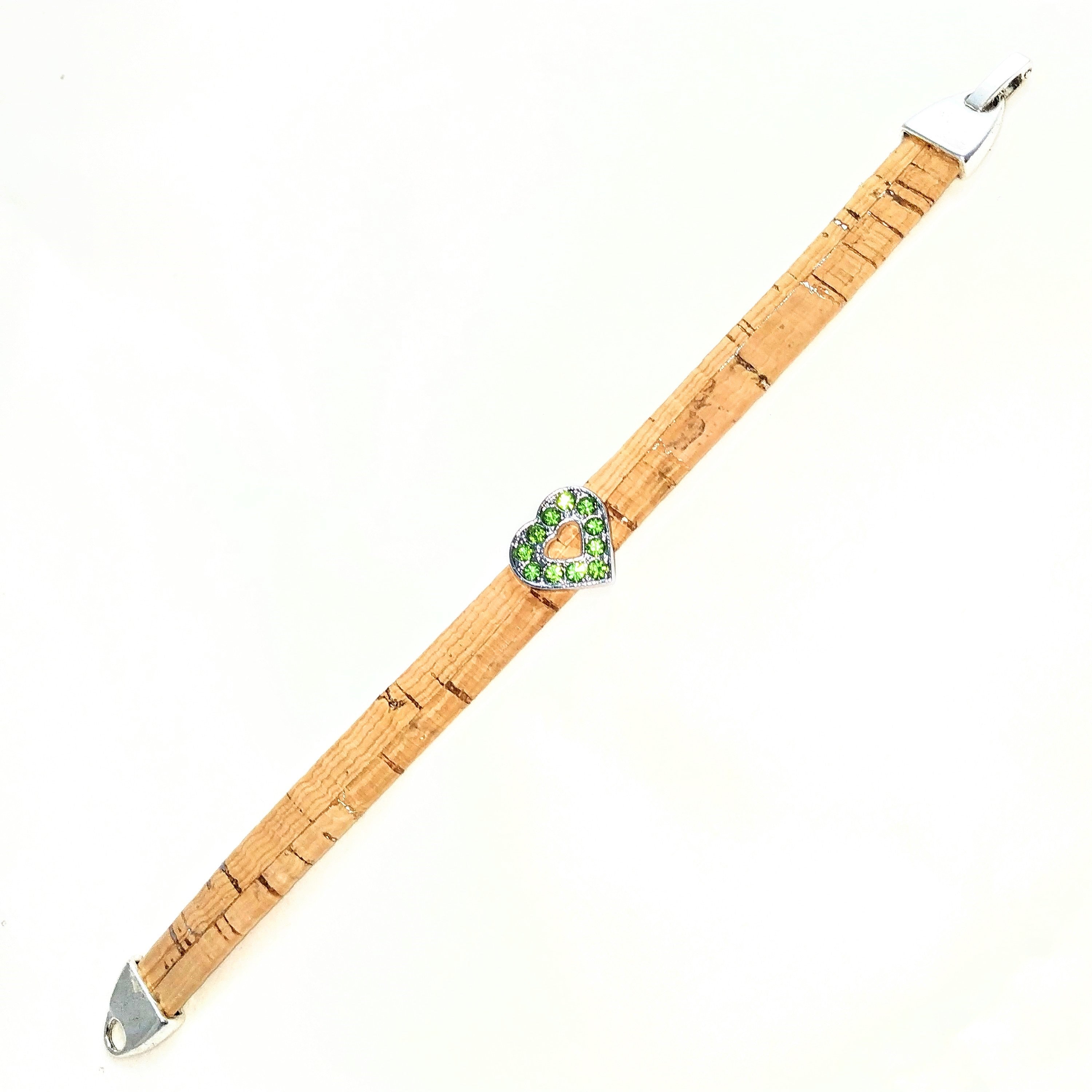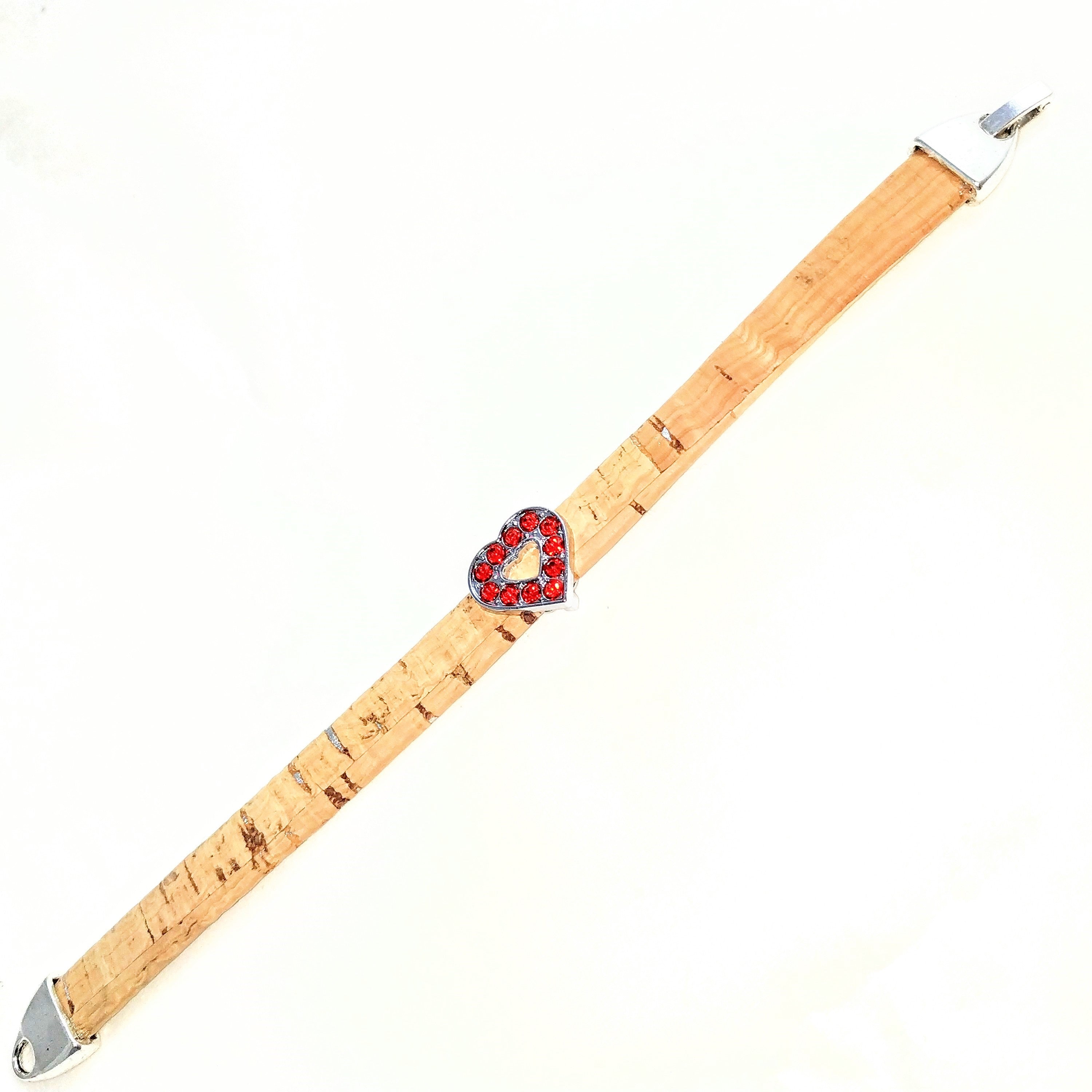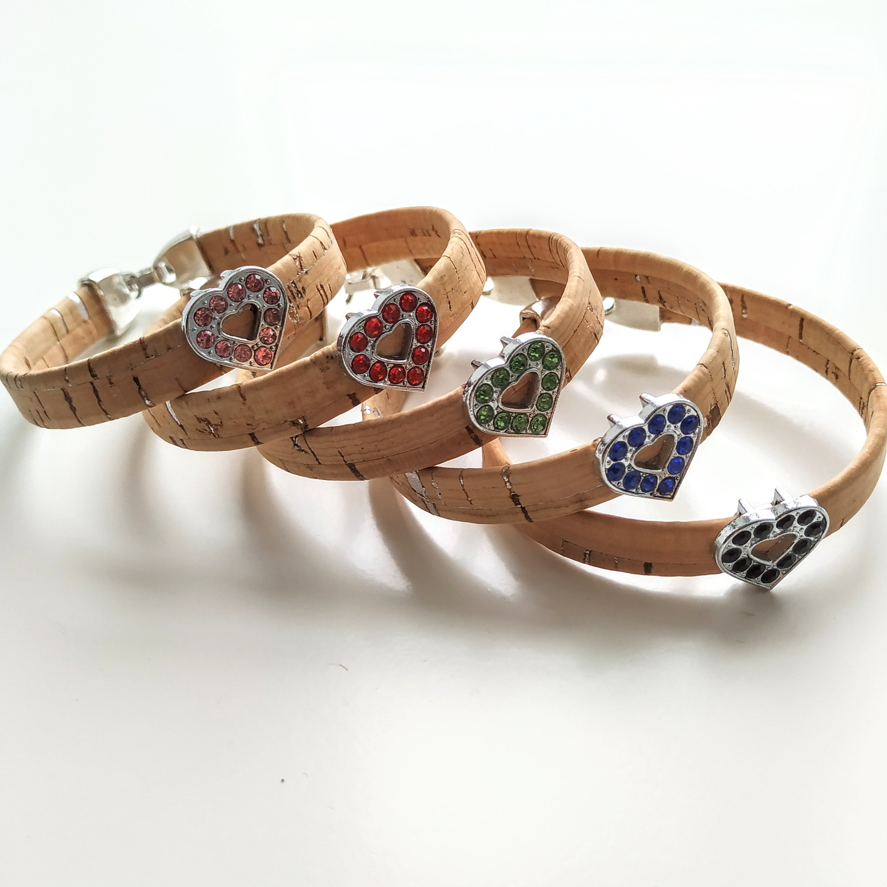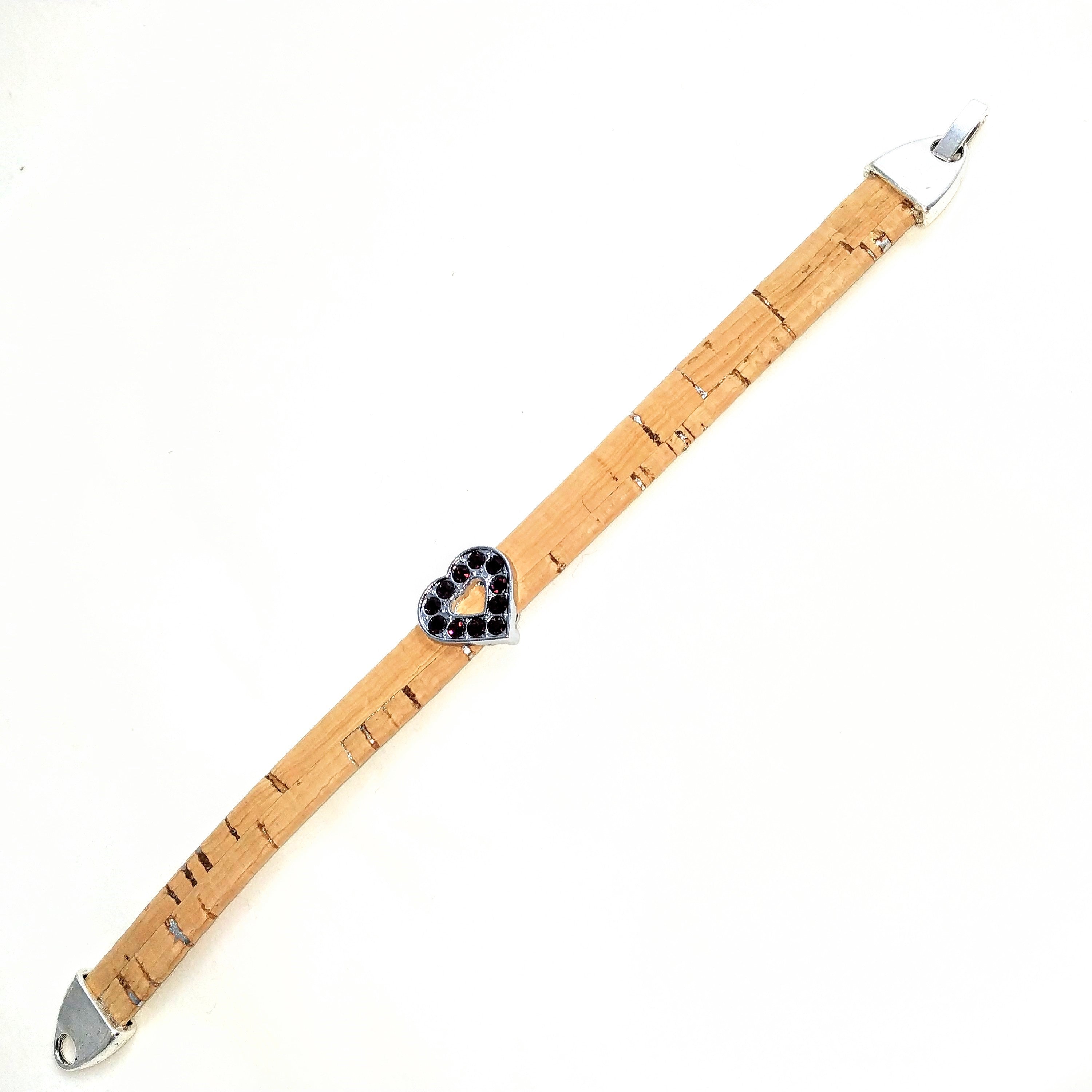 Armband aus Kork mit Silberflakes und einem Herz mit Straß