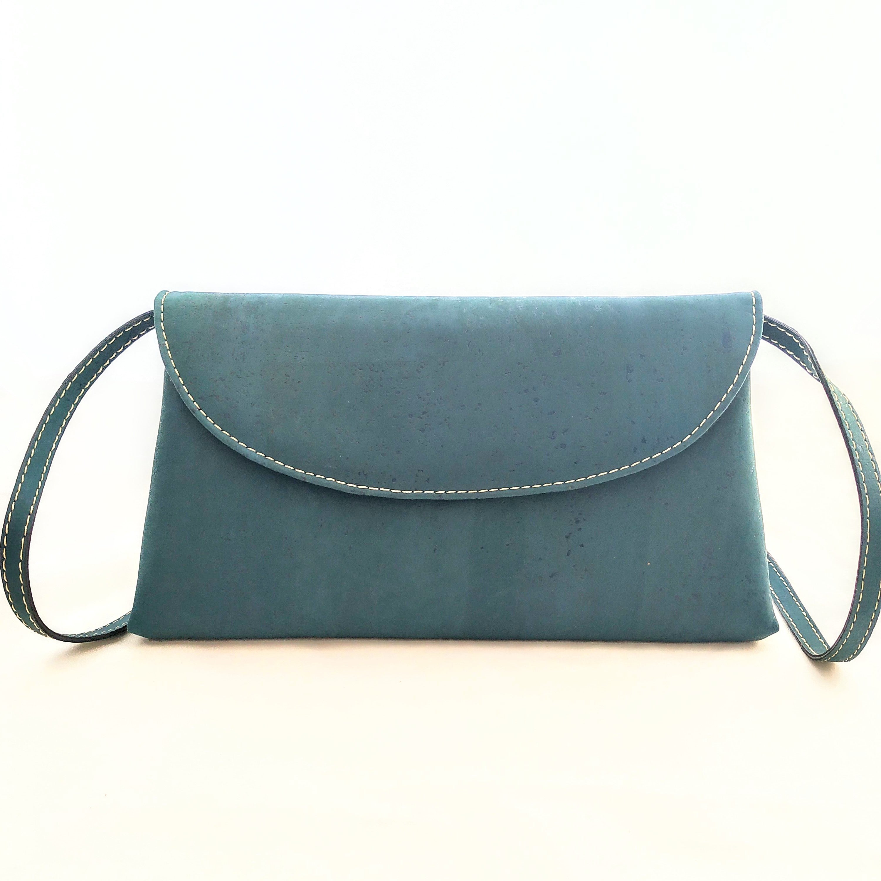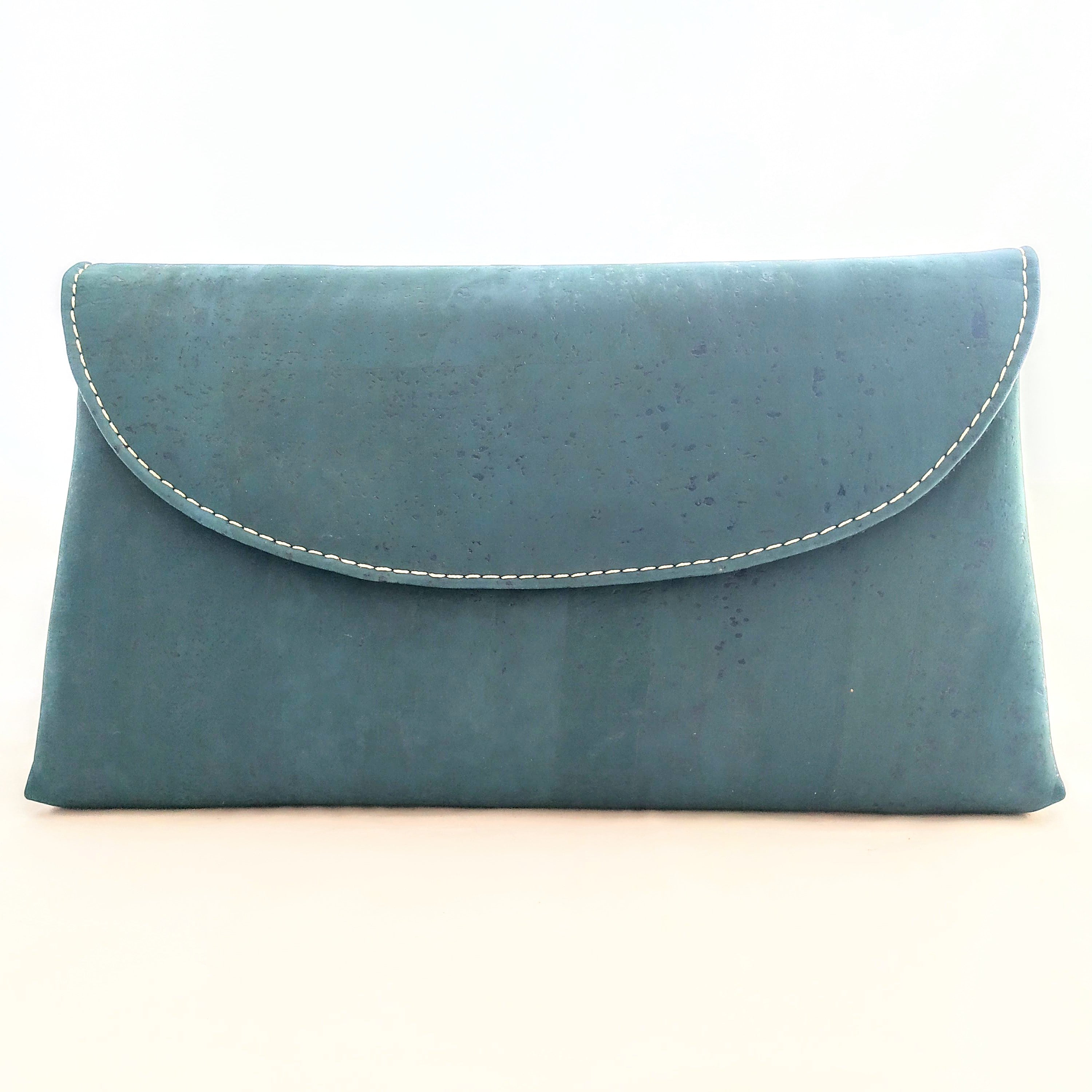 - knautschig weiche Clutch aus petrolfarbenem Kork