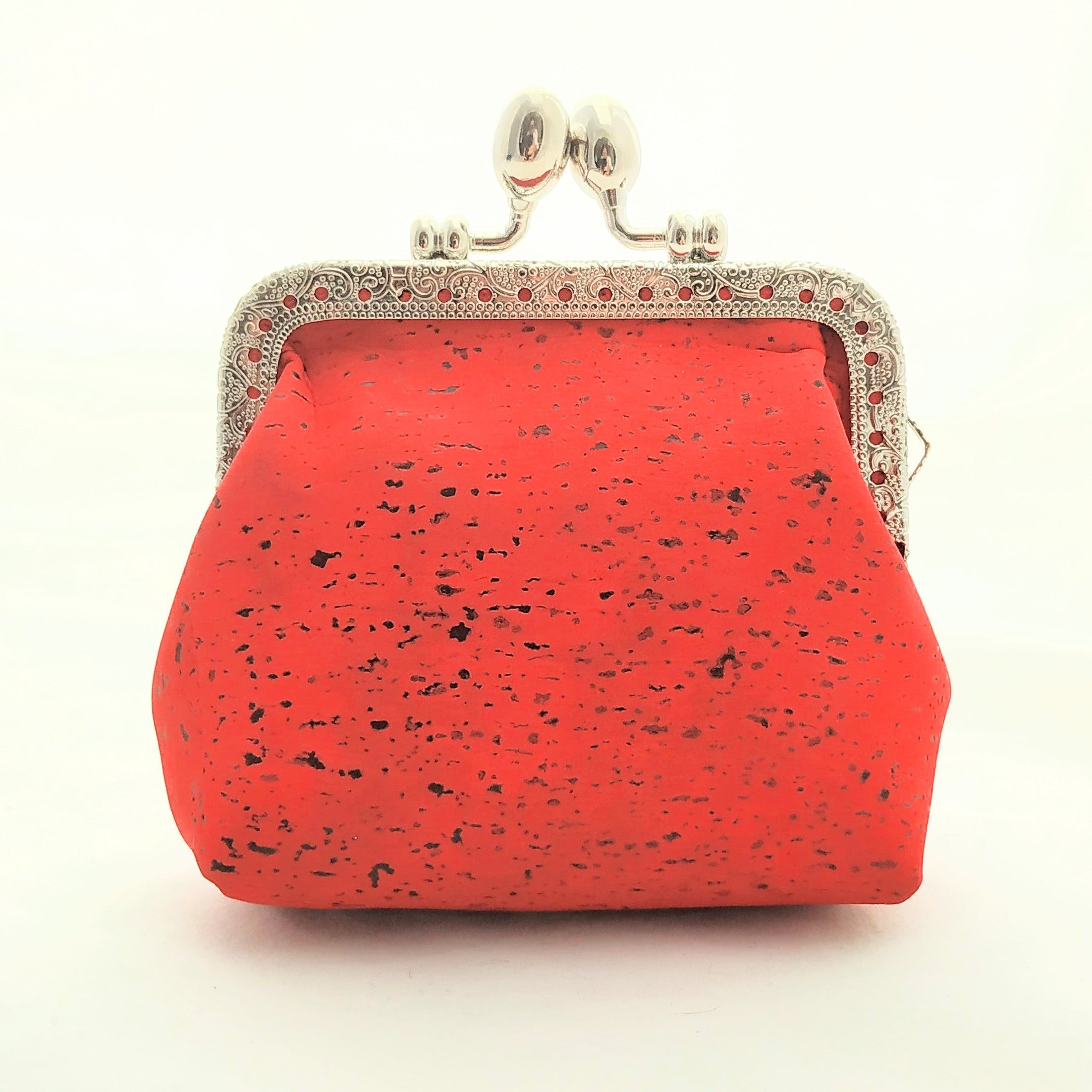 - niedliche Geldbörse aus rotem Kork mit sicherem Klickverschluss