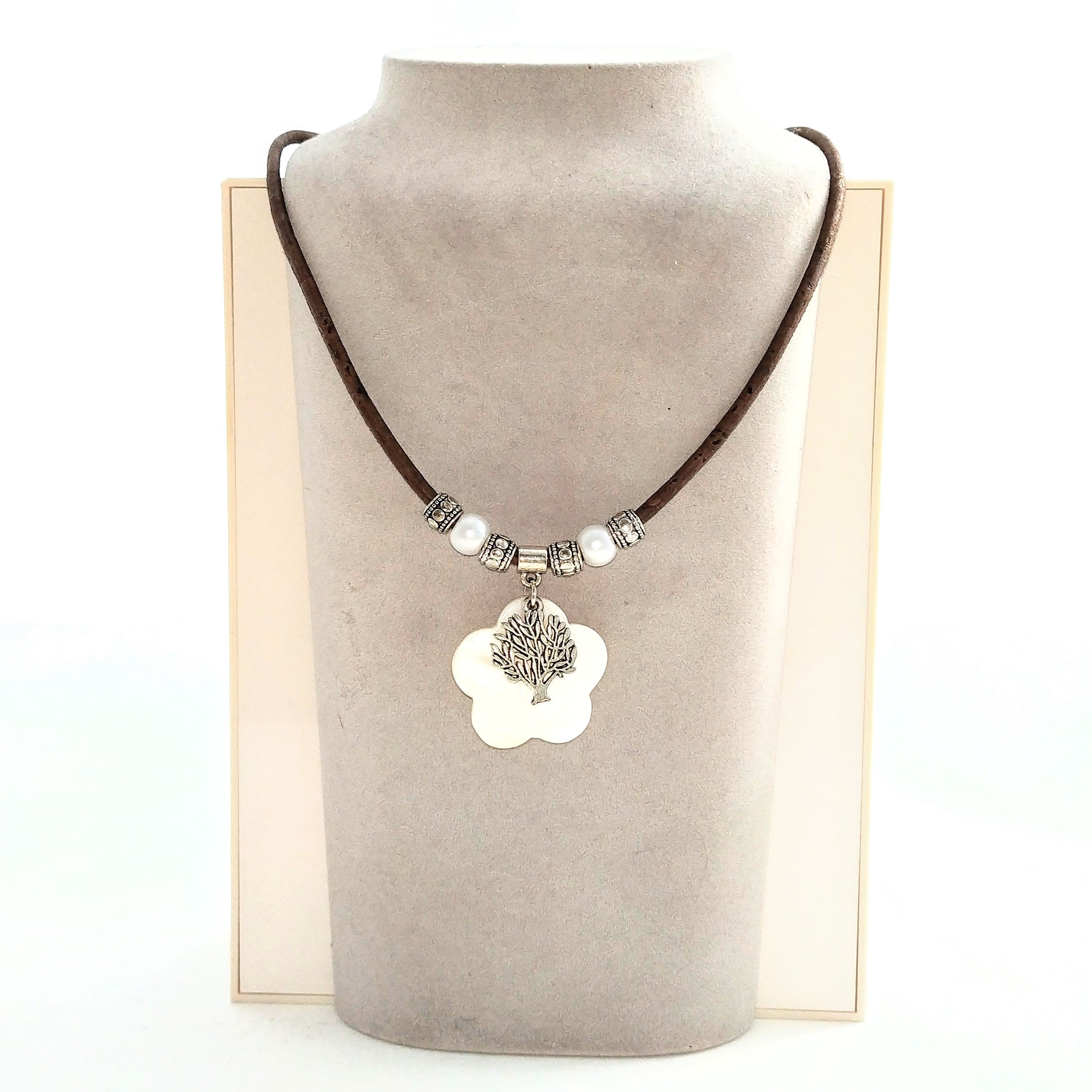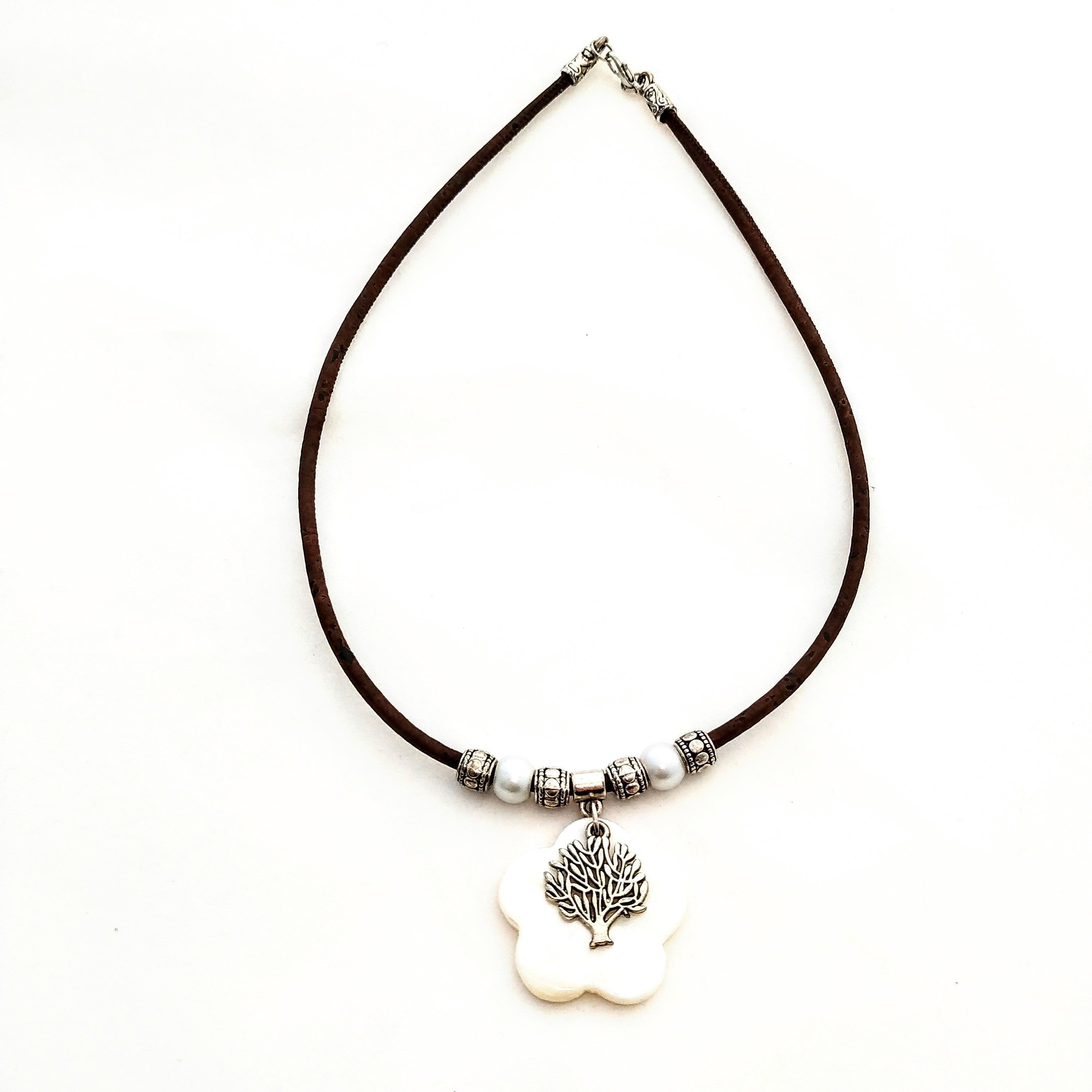 Lebensbaum an dunkelbraunem Kork mit Perlmuttblume