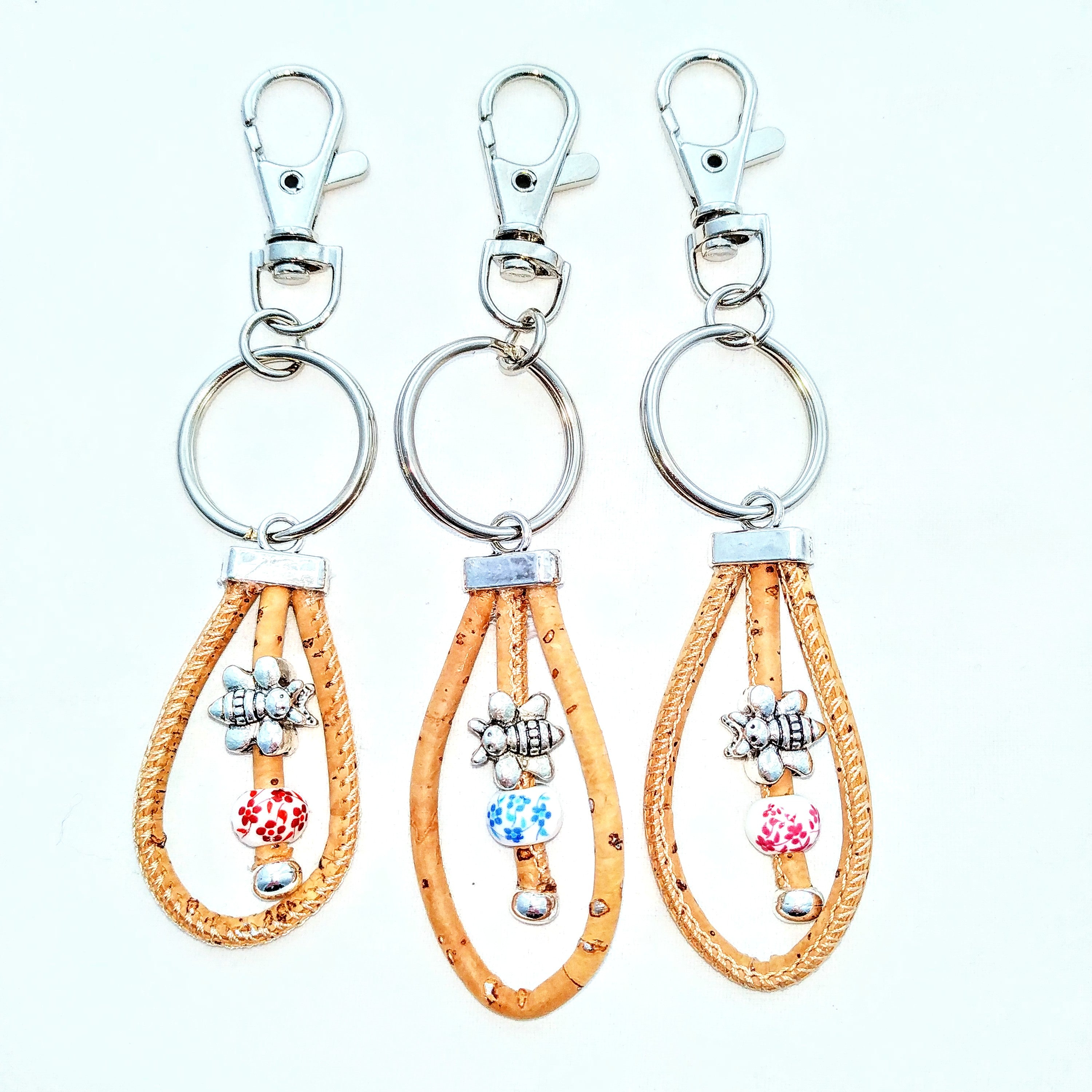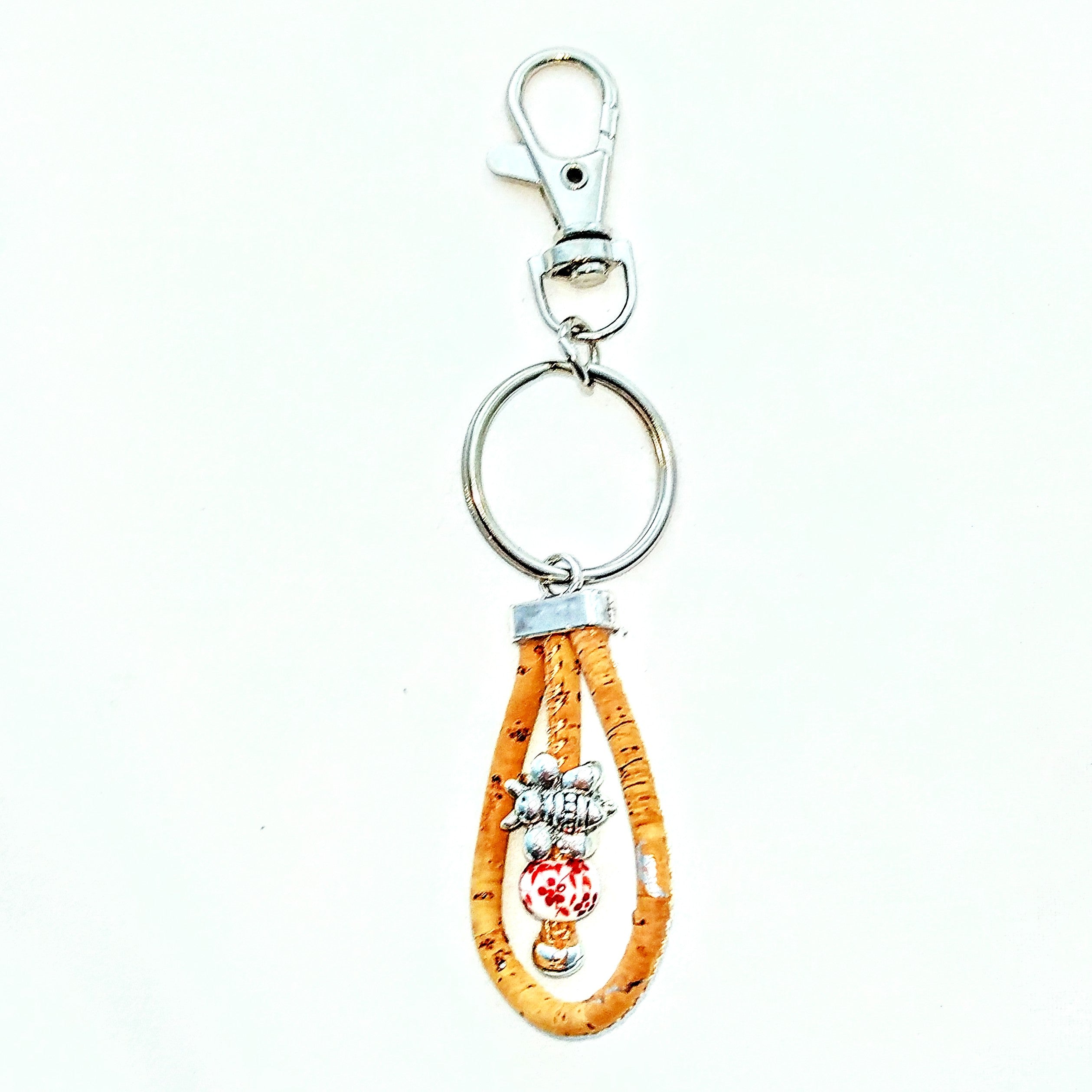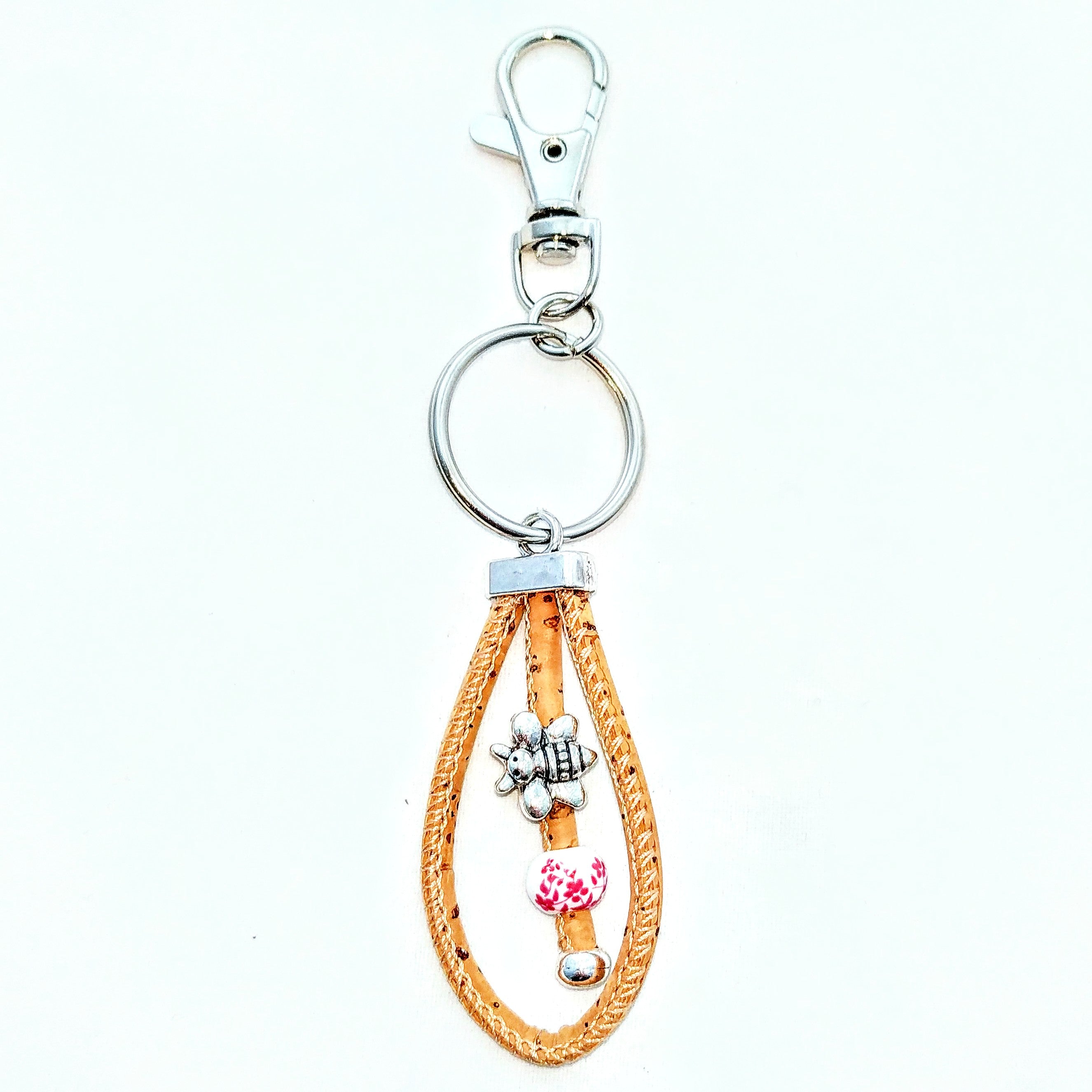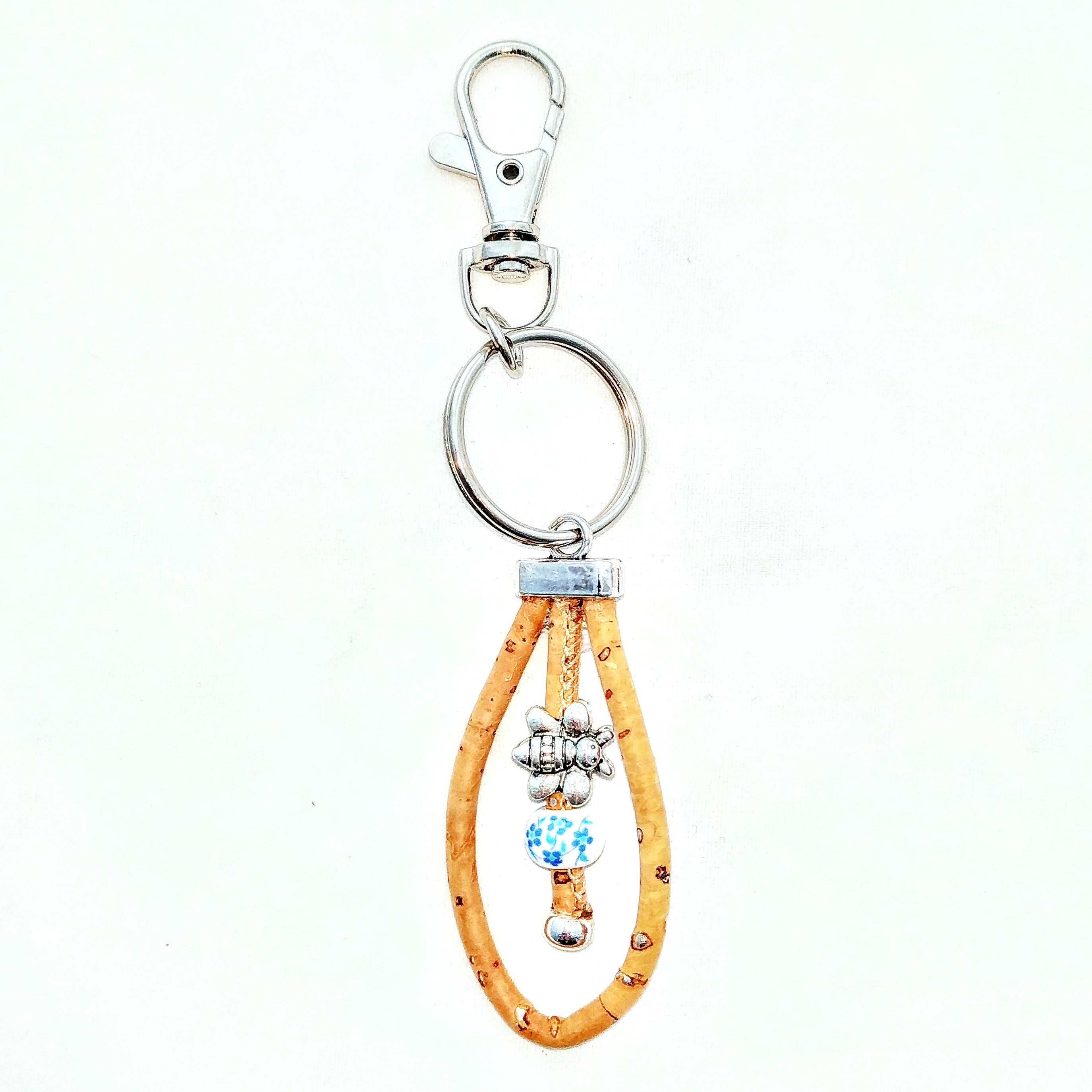 Das kleine Bienchen aus Metall, die Blumenwiese auf der Keramikkugel und die Kordel aus Kork mit silberfarbenen Flakes machen ihn zu einem zauberhaften Begleiter im Alltag. Mit dem Karabiner befestigst du ihn einfach an deinem Schlüsselbund oder deiner Tasche. Der Wirbel am Karabiner sorgt dafür, dass das Bienchen immer in Bewegung ist.