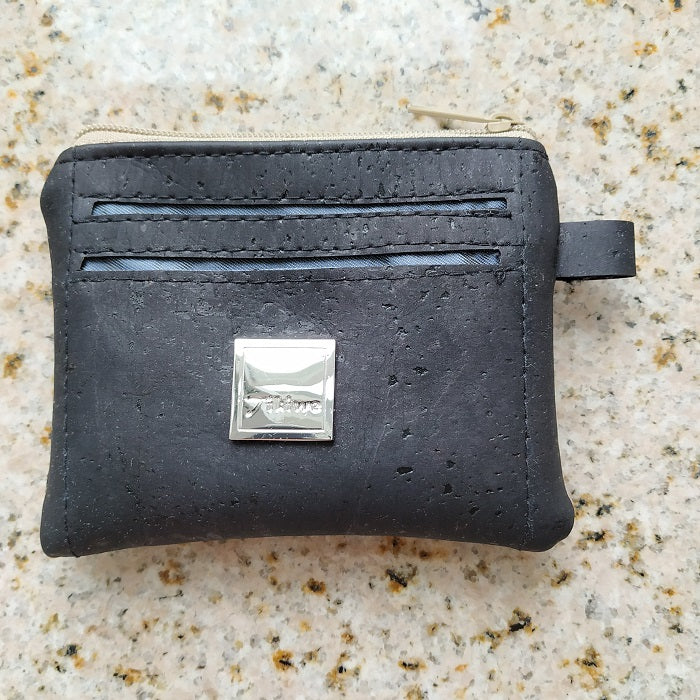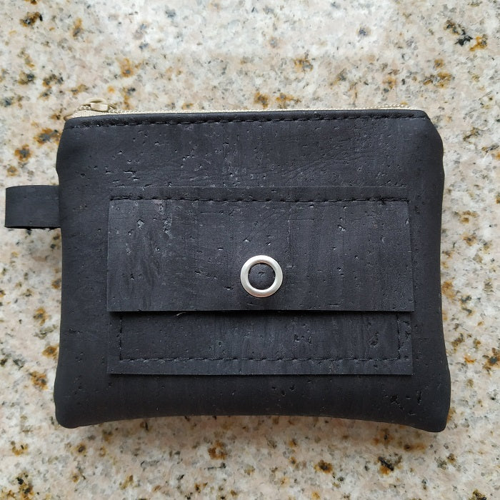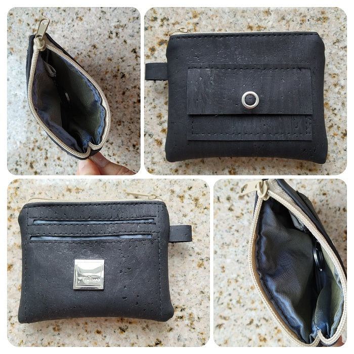 Schlüsselmäppchen aus schwarzem Kork mit Münzfach