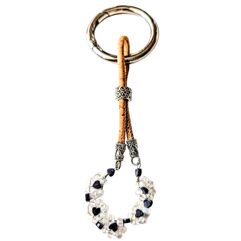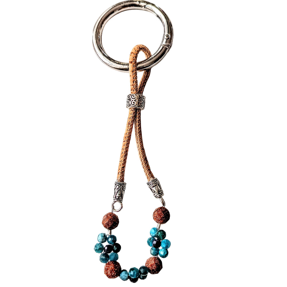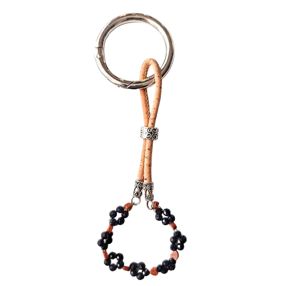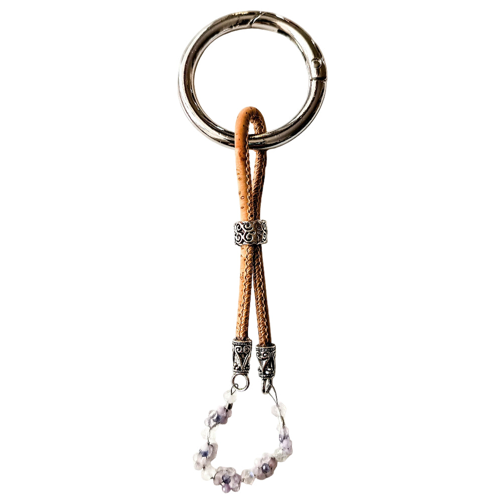 Taschenanhänger aus einer Korkkordel und echten Steinen.