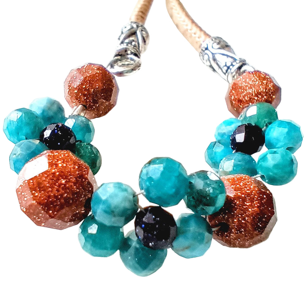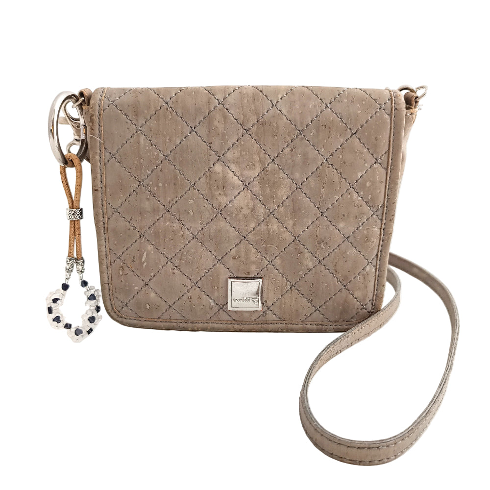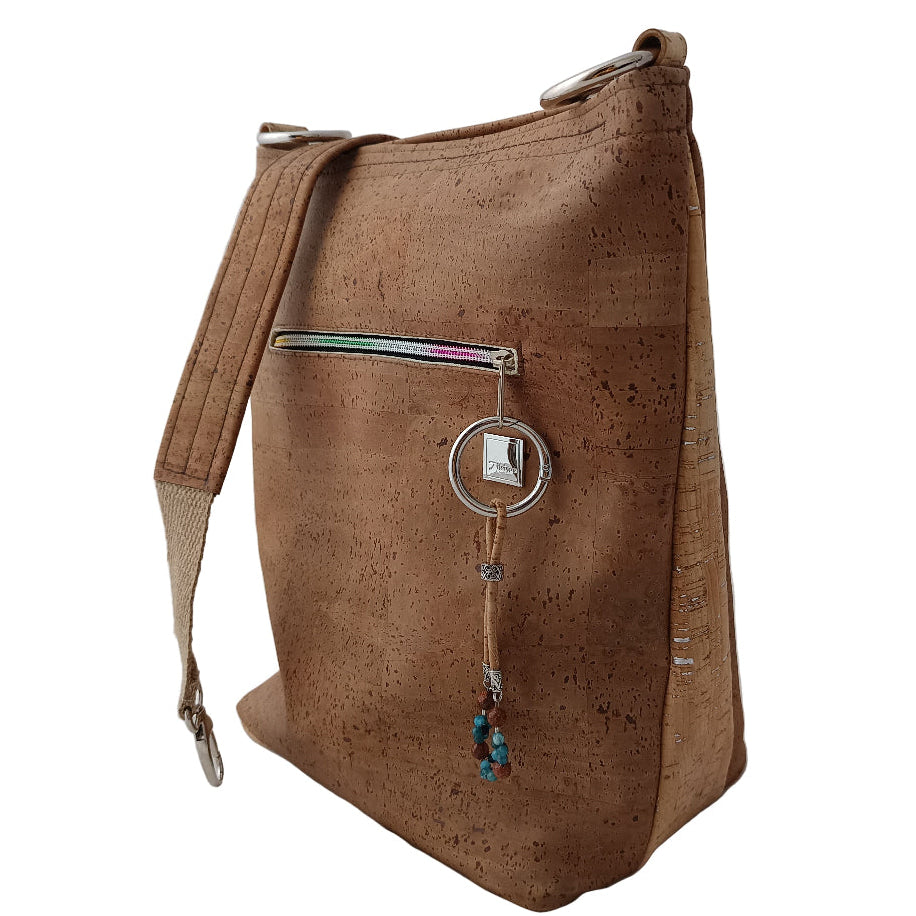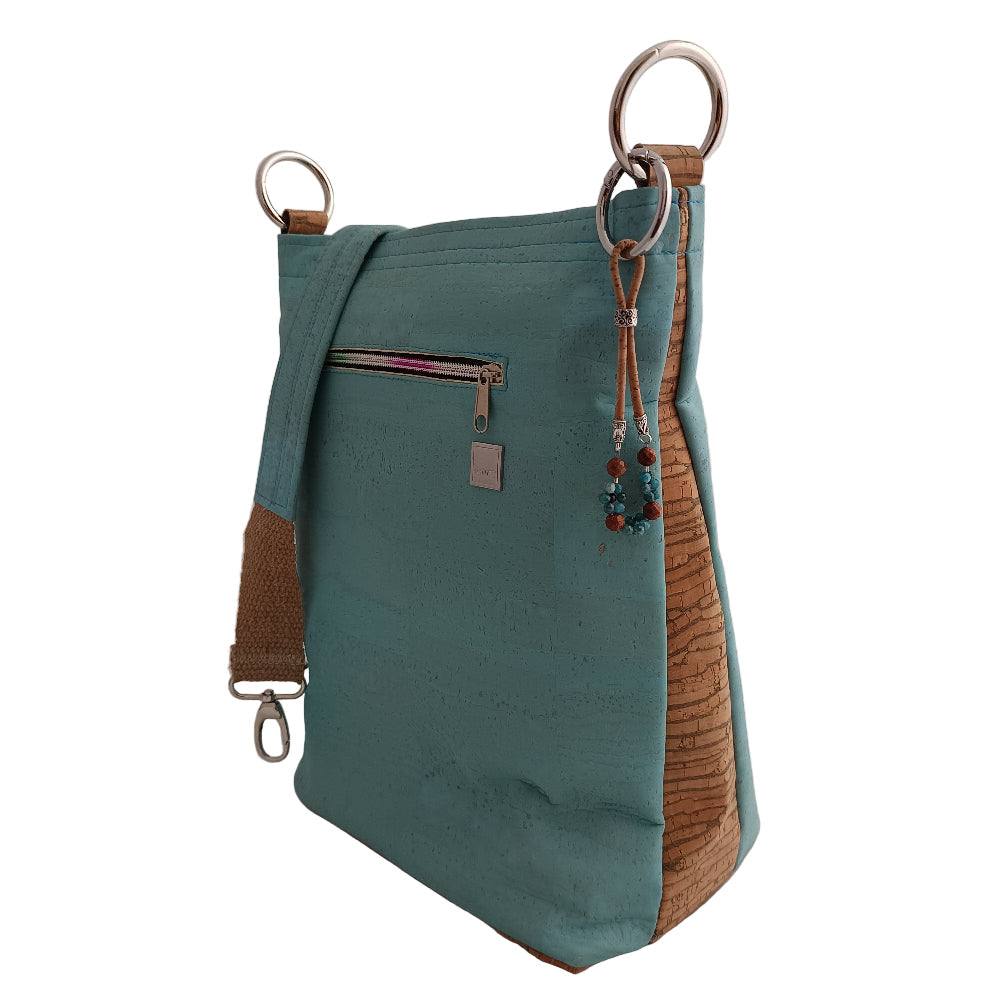 Taschenanhänger aus einer Korkkordel und echten Steinen.