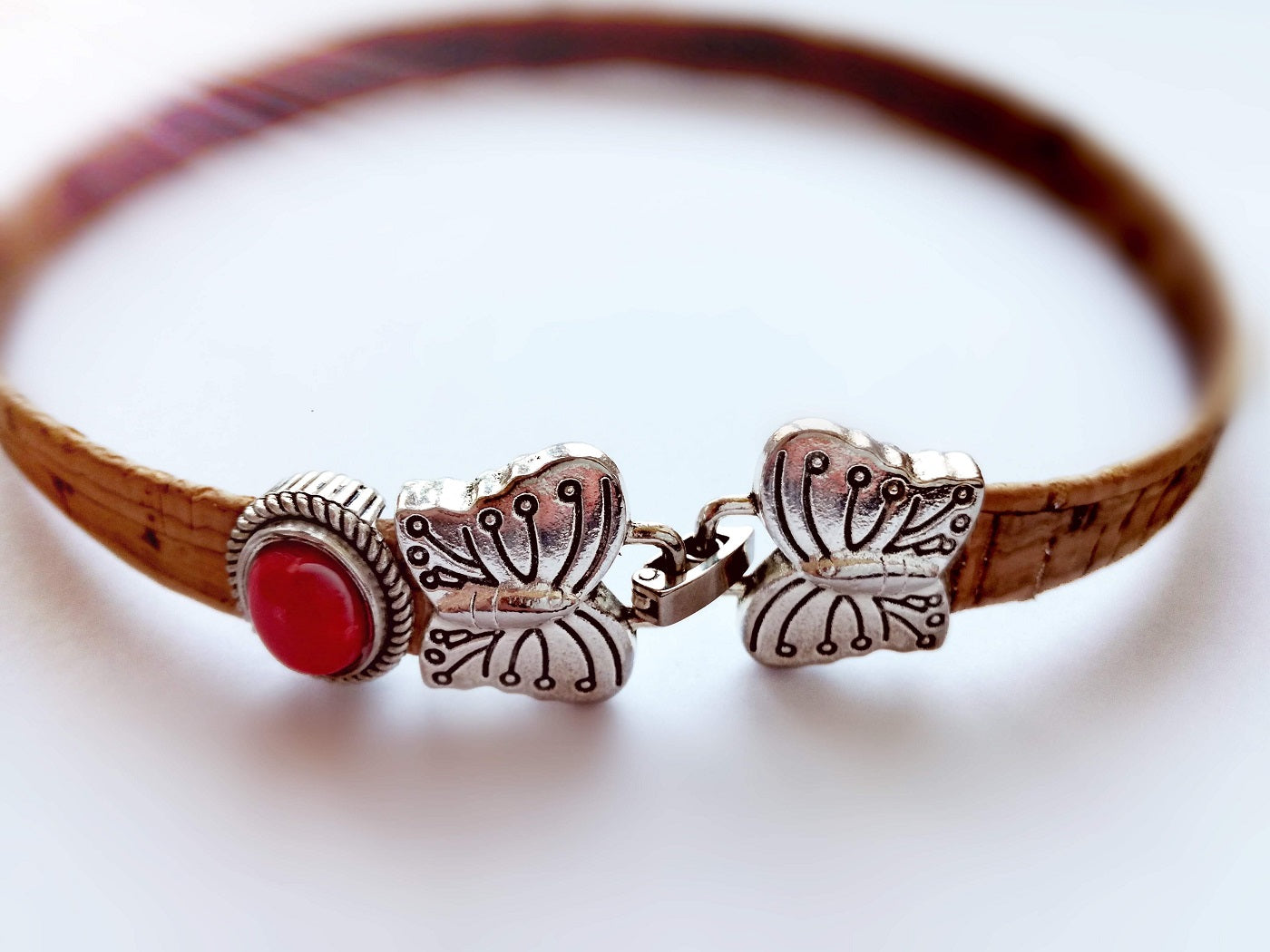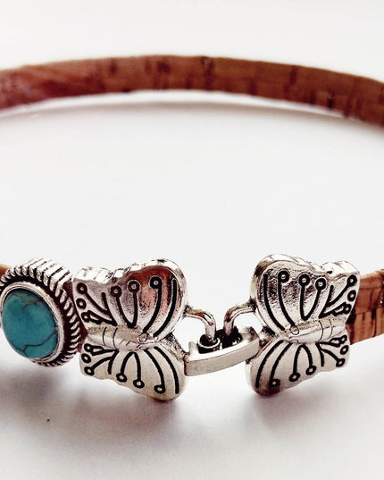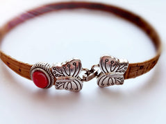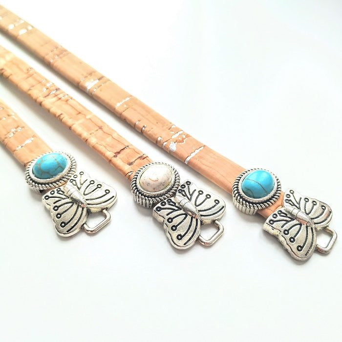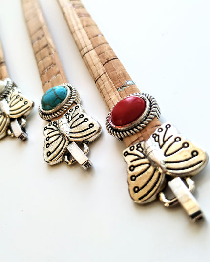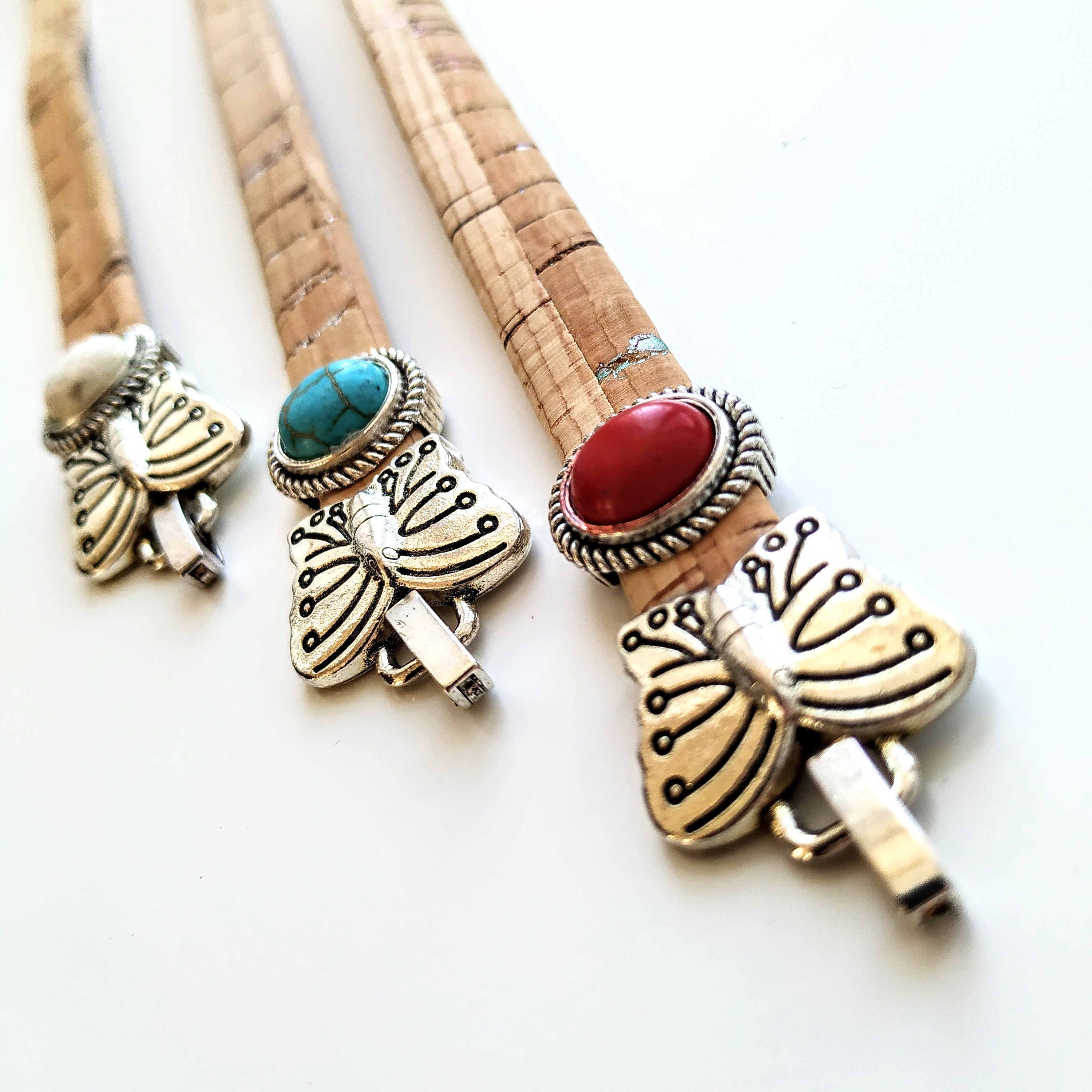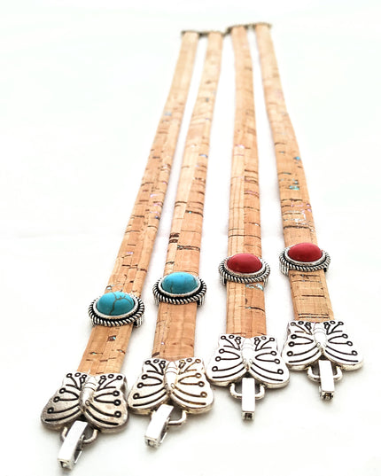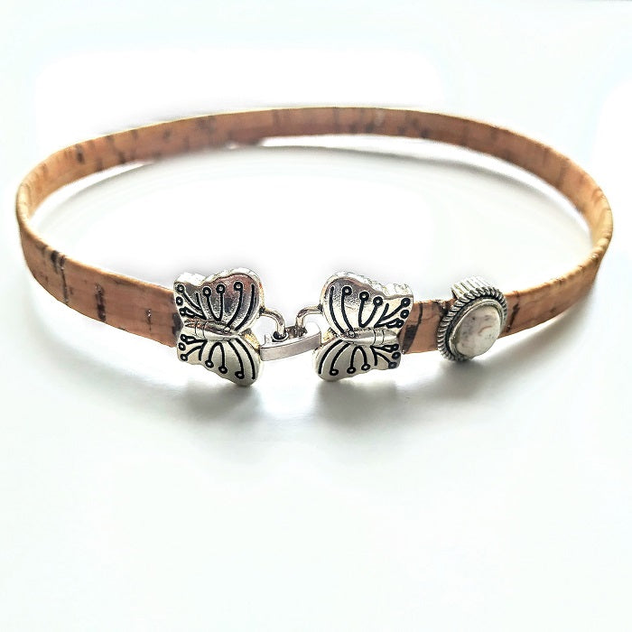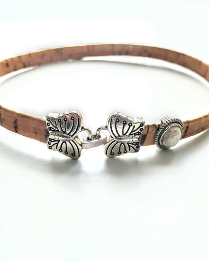 zauberhafter Schmetterling auf weichem Kork und farbigem Stein, Wickelarmband / Choker