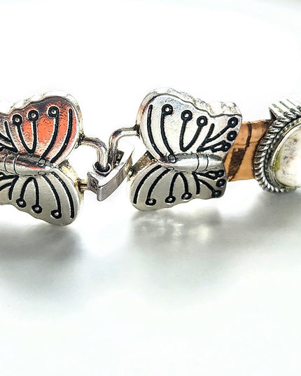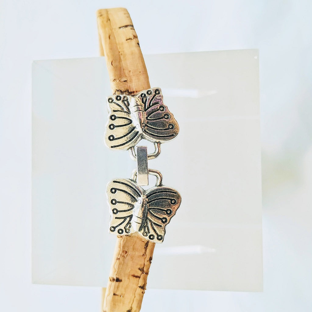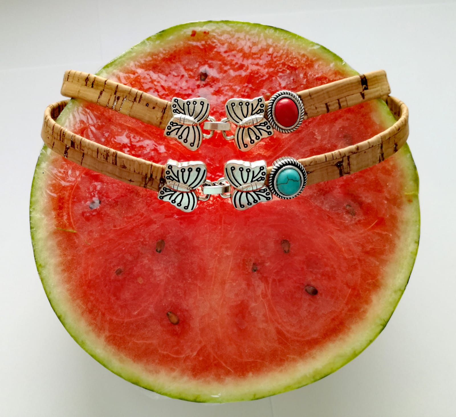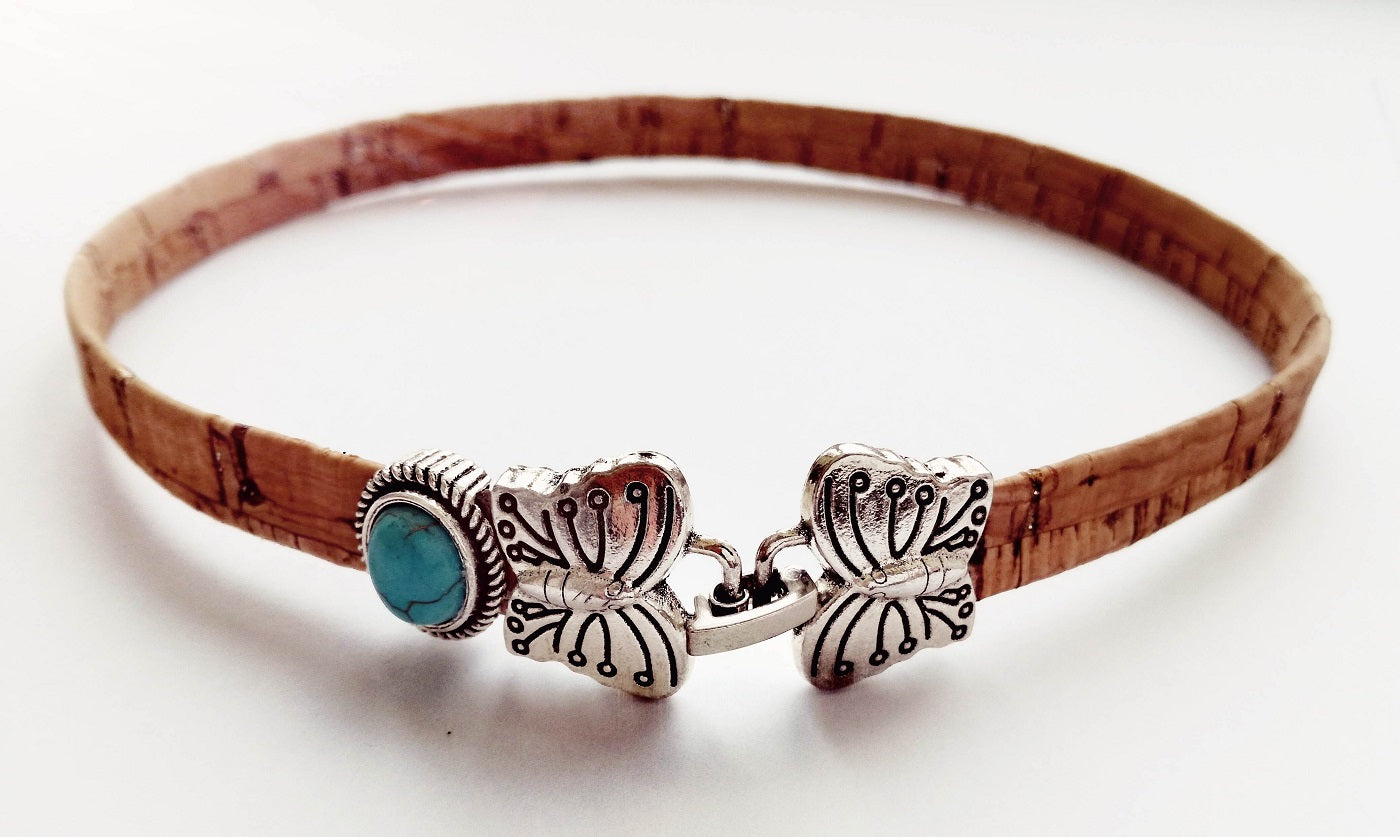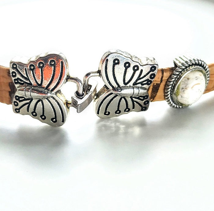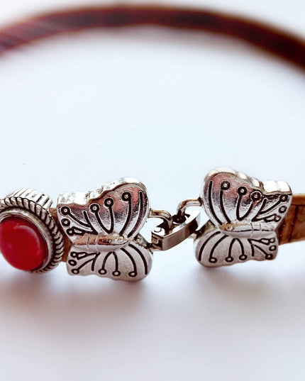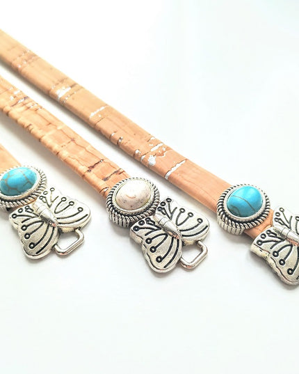 zauberhafter Schmetterling auf weichem Kork und farbigem Stein, Wickelarmband / Choker